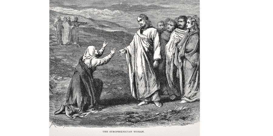 Oder die Geschichte von der Frau und ihrer kranken Tochter (Matthäus 15,21-28). Jesus hatte sich mit seinen Jüngern zurückgezogen, in die Gegend von Tyrus und Sidon, in heidnisches Umland. Hier wohnten die nichtjüdischen Bewohner Palästinas – damals hießen sie Kanaanäer. Eine einheimische Frau, eine Kanaanäerin, nähert sich der jüdischen Männergruppe. „Ach, Herr, du Sohn Davids, erbarme dich meiner! Meine Tochter wird von einem bösen Geist übel geplagt“, sagt sie zu Jesus.